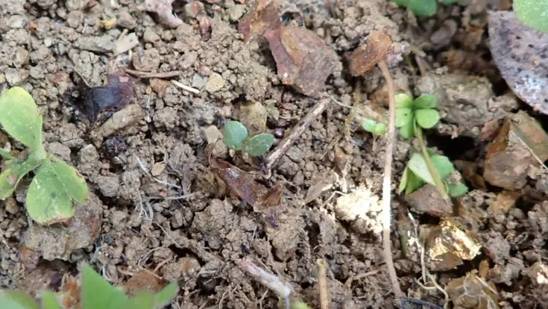 こぼれ種で翌年からは、適時に自然に発芽、成長してくれる。
