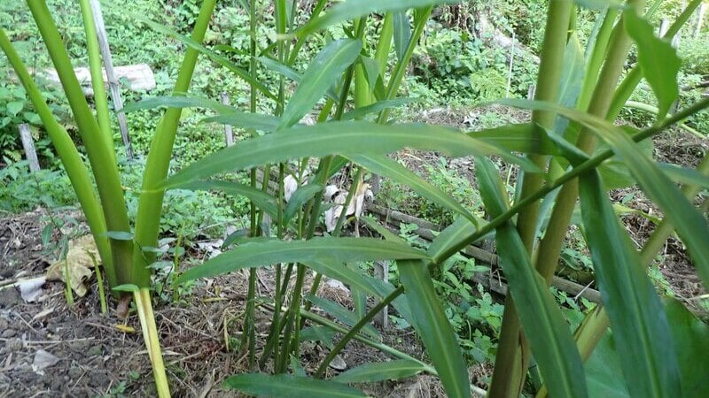 少しずつ水はけが改善されつつあるのと、ショウガは今年垂直仕立てでしばってみたの。それが良かったのかも!