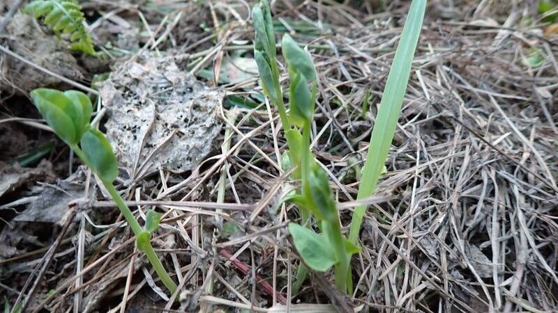 夏のキュウリの後に蒔いたエンドウがようやく顔を出してくれていました。でも今はどこにも見当たりません。(^_^;)