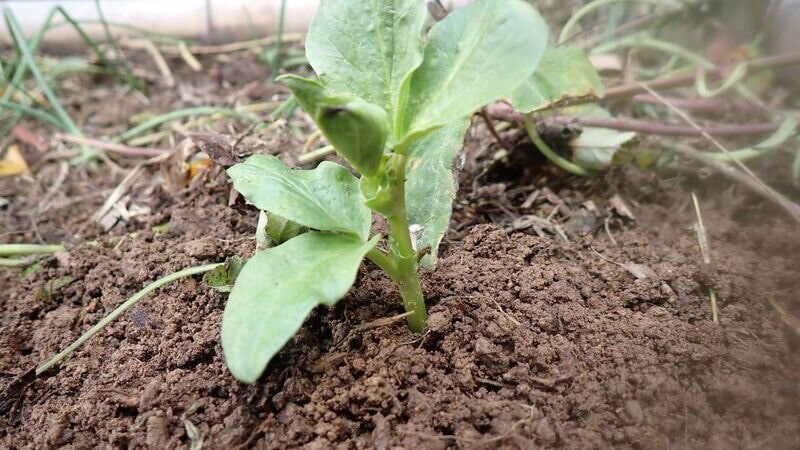 前回玉ねぎとそら豆を植えた畝です。ソラ豆が元気に顔を出してくれ。玉ねぎの苗をようやく植え終わりホットしていました。