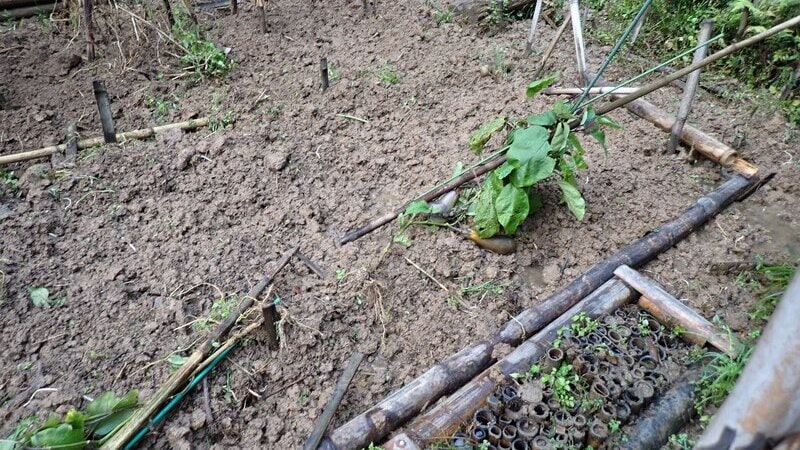 この畝もダメ出しをくらって、竹の囲いは壊れなかったものの、畝の土を抉るように掘り返してくれています。(^_^;)