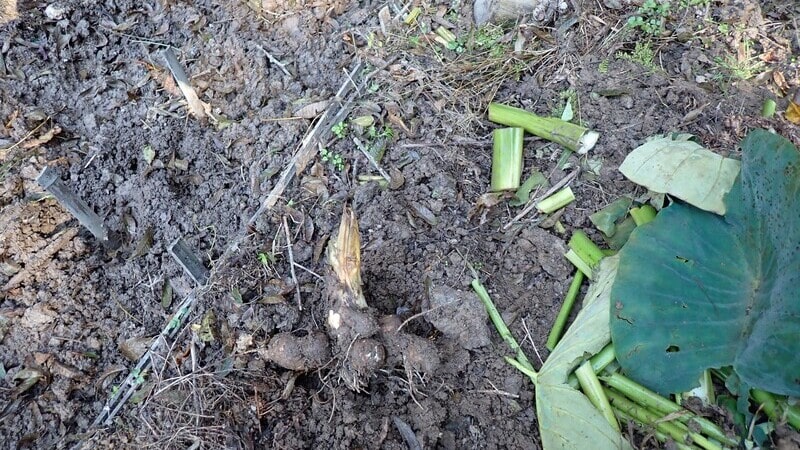 ここから一気にスイッチが入り、今度は同じように埋もれてしまった里芋の畝の溝を掘り返しました。
