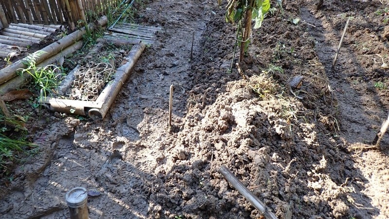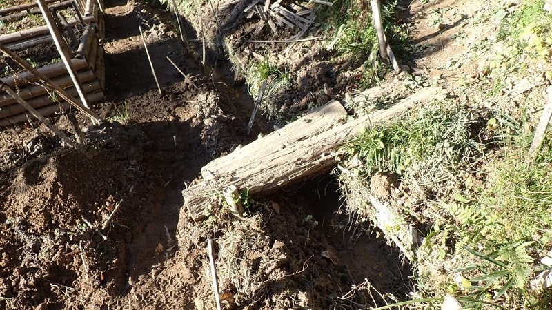 イノシシさんが耕してくれた状態を見て、ピンと来ました。土を積み上げることで高低差がなくなり、行き場を失ってた水が溝へと抜けてくれるようになりました。ありがとう。いのPi師匠!