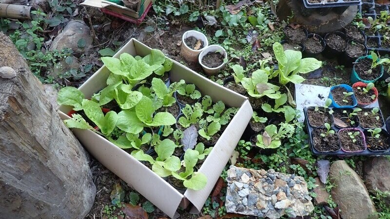二段目をセットした後、白菜とサンチュの苗を定植しました。