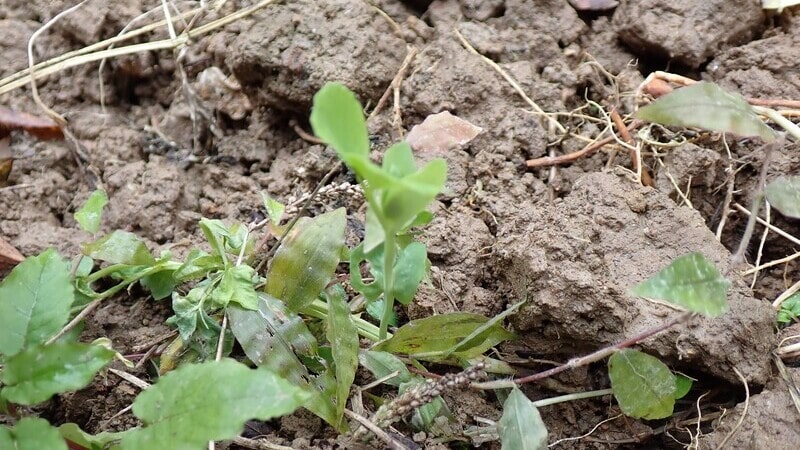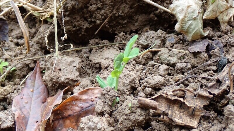 キュウリ畝でエンドウと大麦が発芽した直後に、イノシシさんに畝全体を耕してもらったため、なくなったと思っていたのですが。
