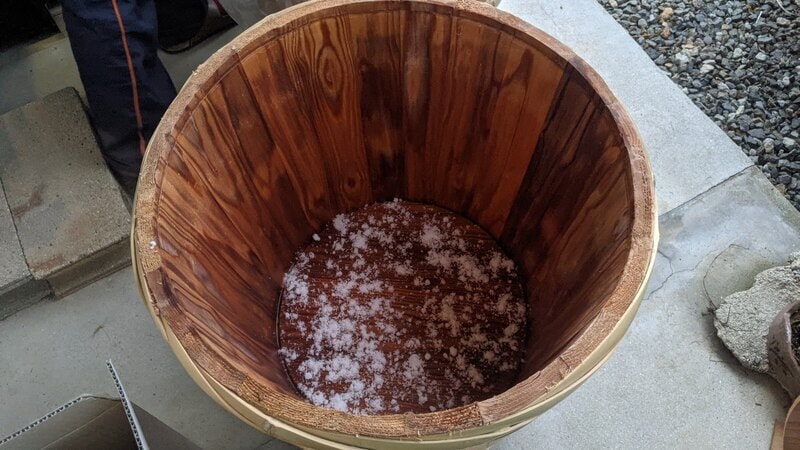 樽を受け取った時に、『すぐに漬けこまないと樽が乾燥してバラバラになるよ。』と言われて(^_^;)