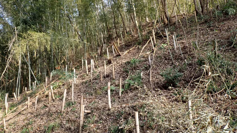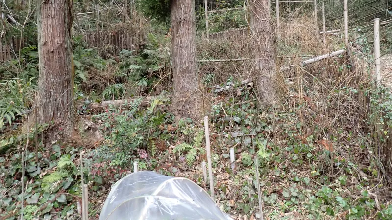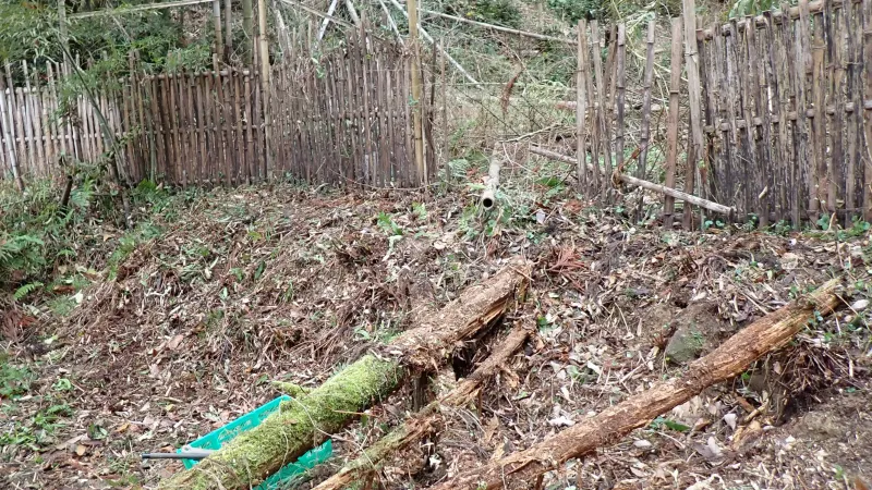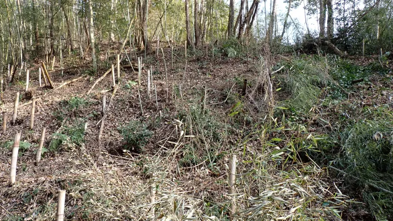 せっかくなので、この半日蔭の場所で育つものを植えたいなと思案中です。柵の後ろ側にはまだまだ倒木や枯れ竹が倒れたままの状態になっているので、整備も広げていきたいですね。