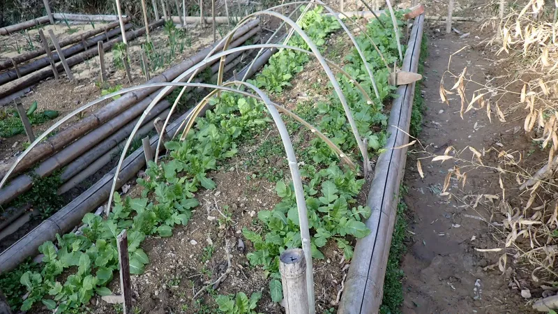 肌寒い日があっても確実に春へと向かっていて、野菜たちもとう立ちしそうな様子です。菜の花が咲く前にネットで囲むことにしました。