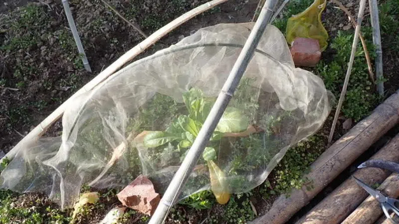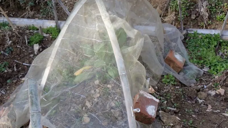 昨年は、何を活用すればいいのか思いつきませんでした。寒さ除けにビニールシートを活用したので、不織布のネットが余っていました。この不織布をそれぞれの大きさにカットして使うことにしました。