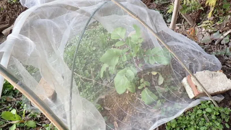 思いつきで、不織布のネットを使いました。上手くいくかは、経過を追って見守ります。