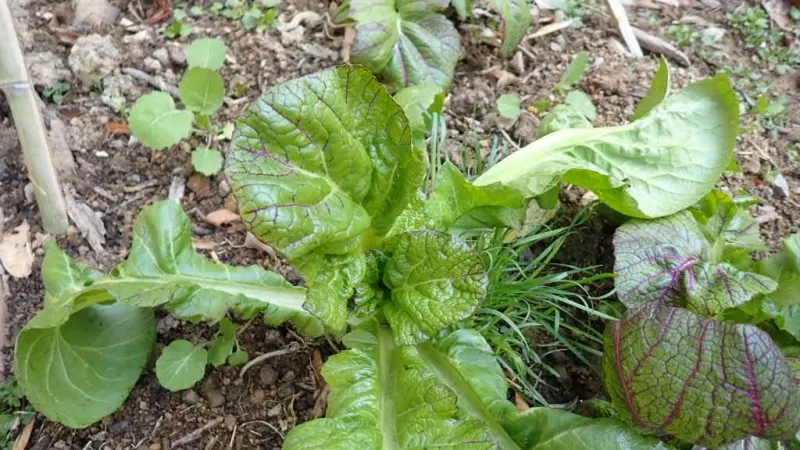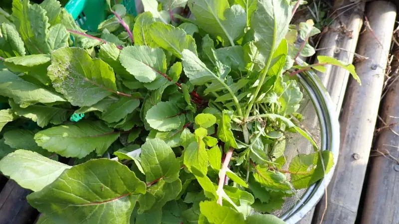 一度収穫した所から、新芽を伸ばして再び大きくなろうとする姿もあります。収穫して輪切りの唐辛子と一緒に塩漬けすれば美味しい高菜の浅漬けが出来上がります。ご飯が進みますよ~。