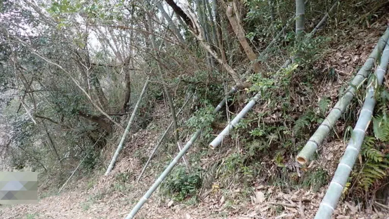 以前、杭として突き刺した竹筒は、土の重みで崩れかけていました。